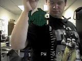 in front of the Live Shot Camera holding a Dopefish Christmas Tree Ornament.