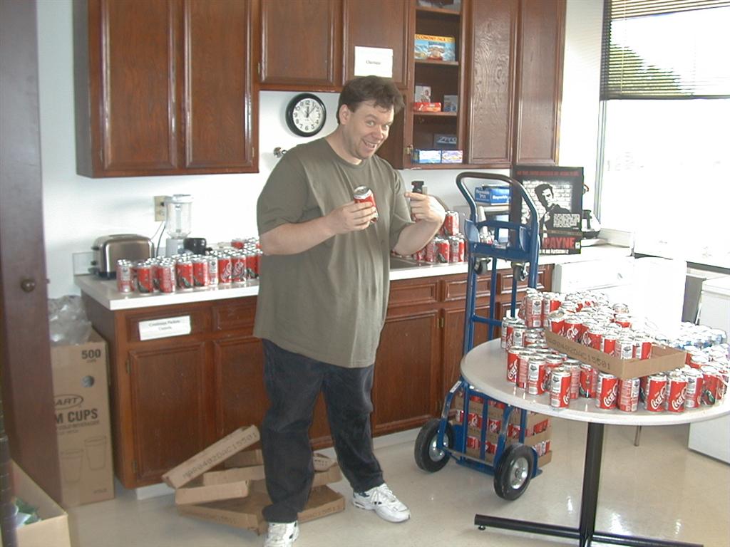 12 cases of Coca-Cola in the lunchroom of our old offices.