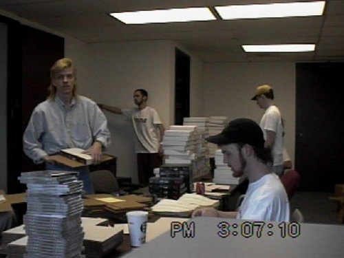 & Allen Blum packing Duke Nukem 3D orders in the Spring of 1996.