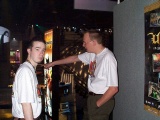 Keith points out a group of passing booth babes to Chris but Chris finds Joe Siegler much more appetizing. (Cameron Orr)