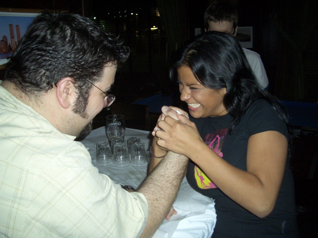 Crystle grabs hold of the nearest anchor, Ed Lima. His weight proves
