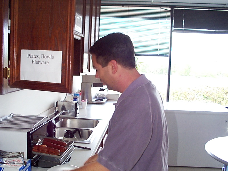 Seeing no label on the his plate saying "hot dogs", Scott Miller mindlessly stares