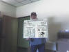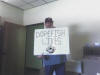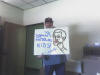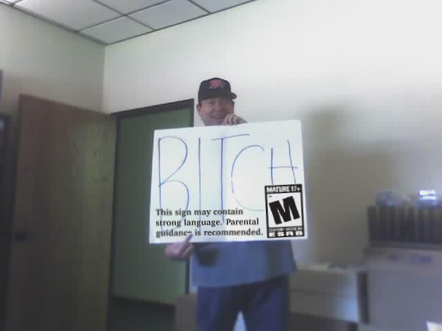 up a sign in Steve Blackburn's office.