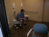 trips, Kevin sometimes likes to go to the bathroom and pretend he's