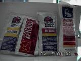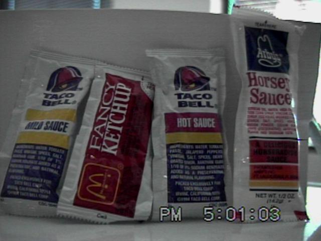 Taco Bell Mild Sauce, Miss Taco Bell Hot Sauce, Miss McDonalds Fancy Ketchup, and Miss