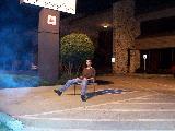 "Whaleboy" Cozzens sitting on a chair in our parking lot at night.