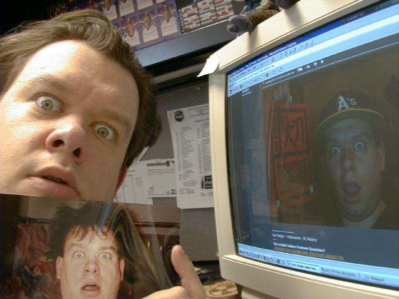 On computer screen: This one's about half-way between aroused, and constipated. Whatever the hell that is... (Ryan
