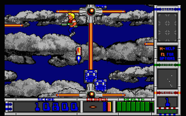 thrower. The flame thrower, when aimed downward, propels Duke upward like a jetpack!