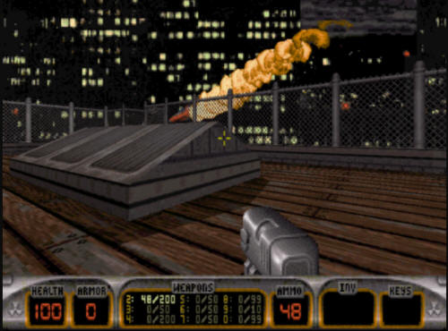 rocket launcher. When you first jump down off the rooftop you