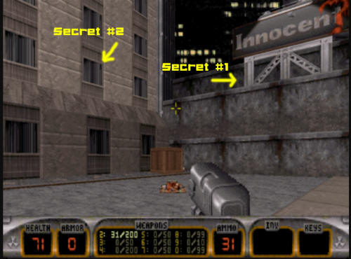 Secret #1, if you jump onto the ledge you used to get up to the