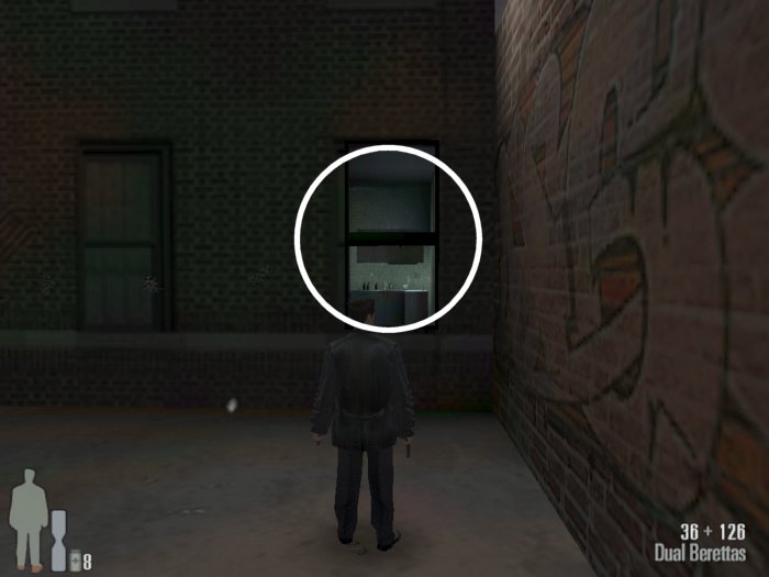 After jumping out the window take a hard left and the window on your left at the far end can be blown out. Jump in there to get some shotguns and see some Soldier of Fortune II posters.