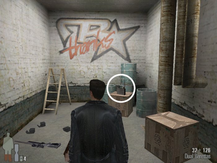 Use the radio to get a message from the Remedy team and get the sniper rifle.