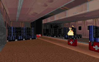 and health by the pop machine. Now go back down the ramps and open door. Now go back