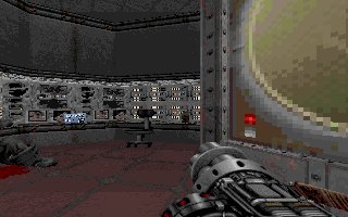 the east there is a console with lots of buttons and switches. In the console is the blue