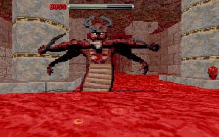 of you. The path back to the doorway is gone and you must fight him on the tilting