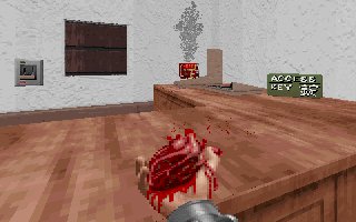 shoot the enemies to your right. Once this area has been cleared, walk to the office area