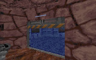 door moves to the open position, you can see an opening. Jump into the opening and blast