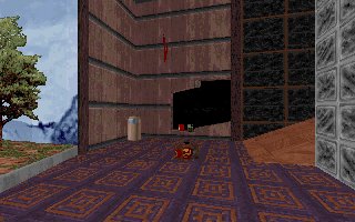 next to the tree. Push on the wall and another secret area is exposed. Inside are shotgun