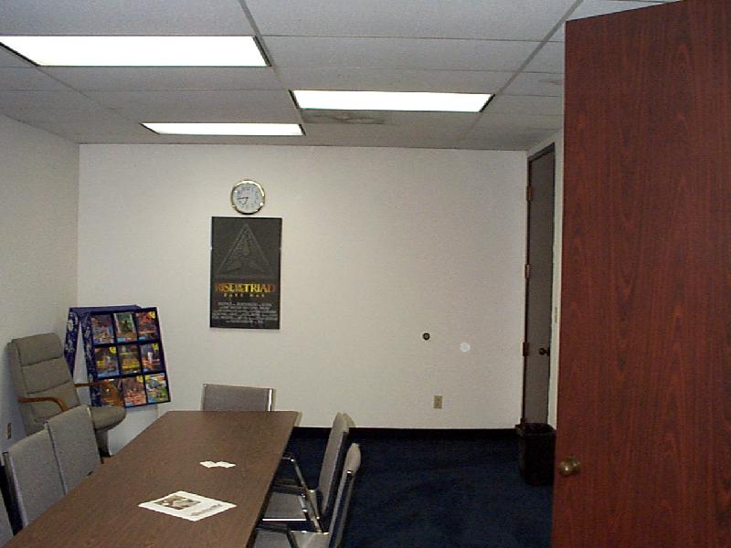This is our conference room. In it meetings with people from other companies are held, as well as production meetings for the various game development teams.