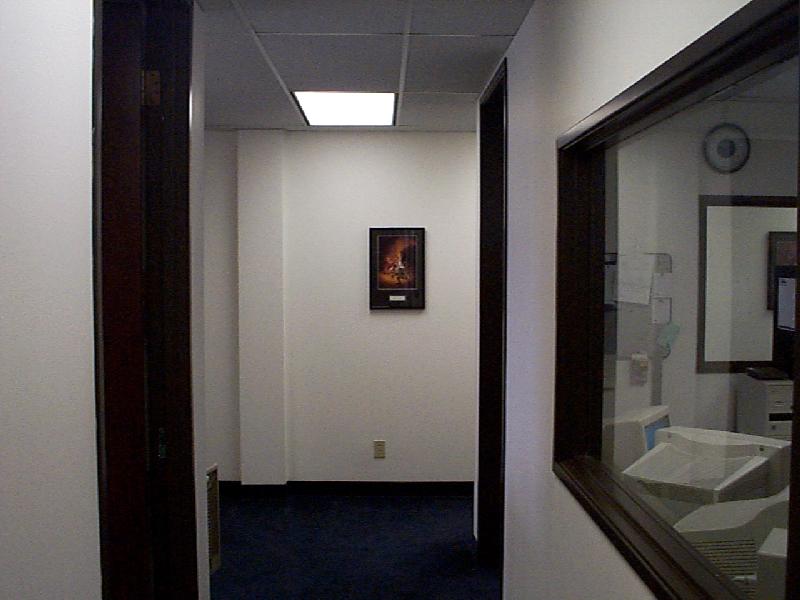 This is a hallway in our offices. To your left is our Music Studio (aka Lee Jackson's Office), and to your right is a window showing Apogee & 3D Realms' Tech Support Department.