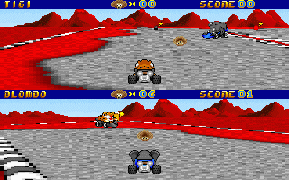 can compete on the same computer (split-screen mode) or using modems. Two players can race