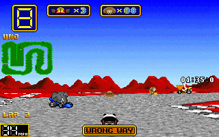 and dangers: Water traps, cacti, oil slicks, posts, stacks of tires, and more. Some tracks