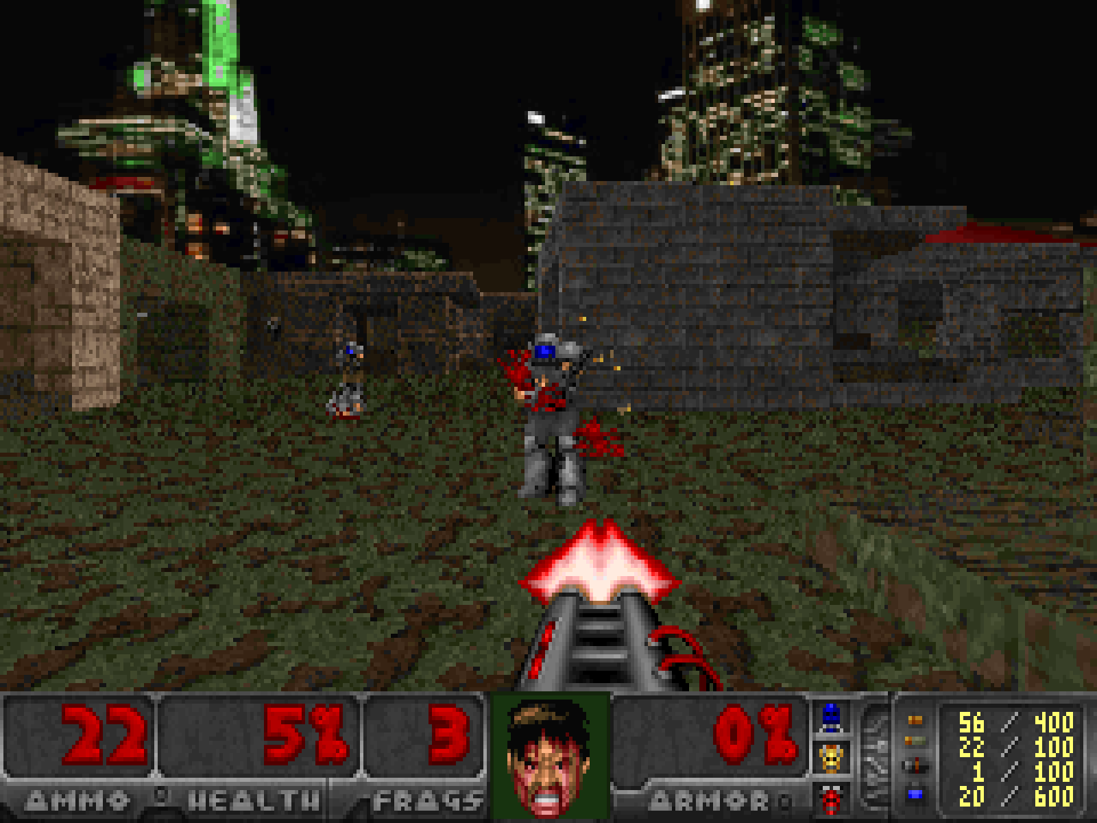 Four episodes, nine levels each, totalling 36 levels. This game aims for compatibility with The Ultimate Doom mods, also known as plain Doom or Doom 1.