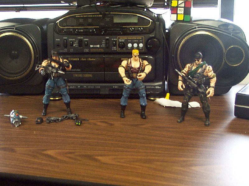The middle one is the current Duke.  The SWAT Duke has his accessories on the