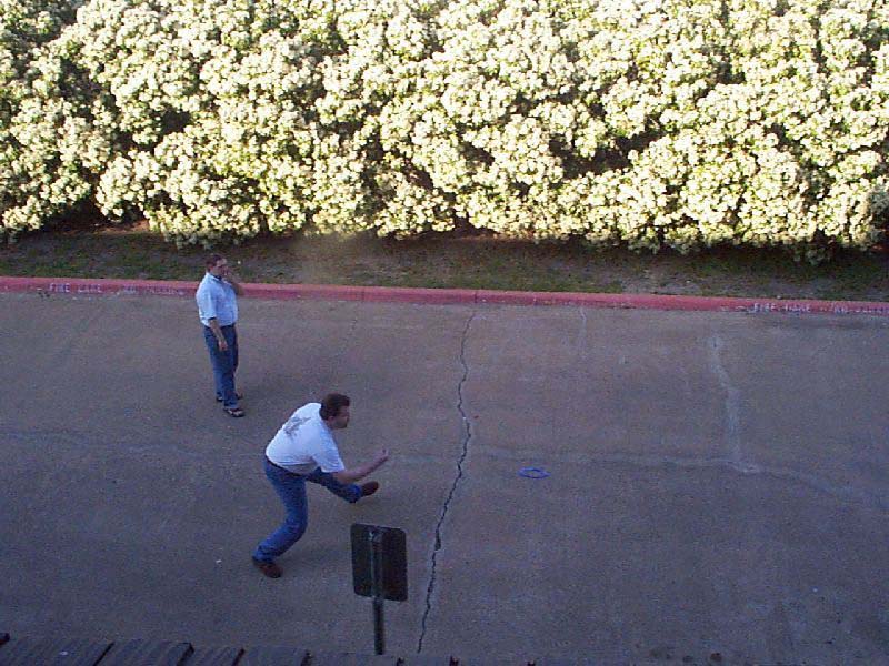 Johnson (bottom) playing Frisbee in our back parking lot.