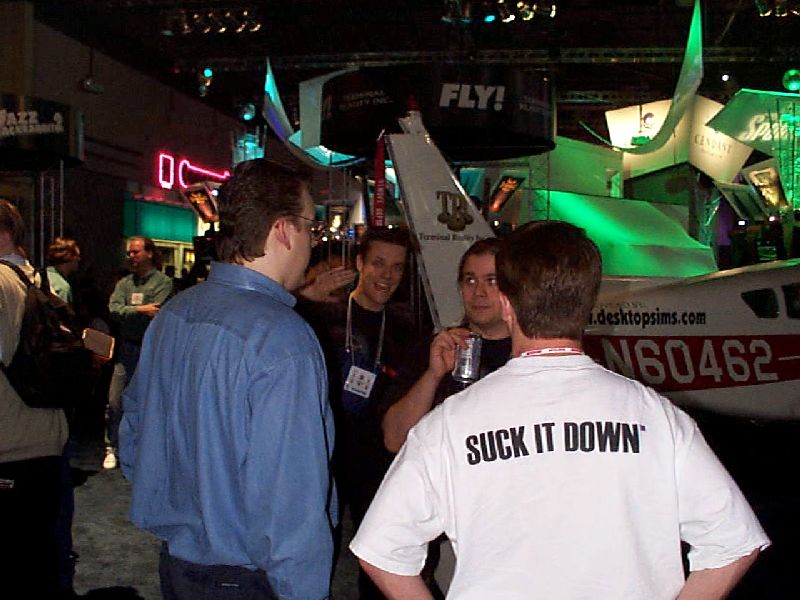 of Remedy Software facing the camera at the G.O.D. booth at 1998's E3. No idea who