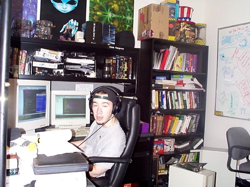 "Chris, go home and get some sleep. Don't forget there's a meeting tomorrow morning to discuss the reasons why Duke Nukem Forever is taking forever to finish. I think 16 hours of programming is enough for one day." "Who's had time to do any programming, I haven't worked on Duke Nukem for a week, I've been too busy reading thousands of Caption Contest entries and I still can't decide who the winner is." (Frank
