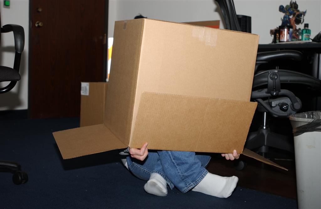 "Peek-A-Boo" with the office garbage can. Scores show the garbage can to