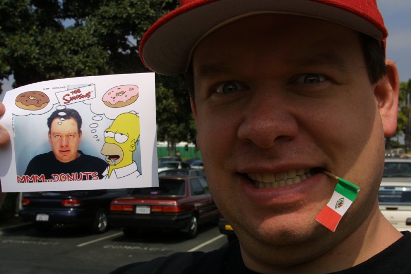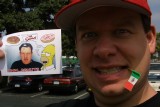 is a guy in a homer look alike outfit. (Aaron Sugimoto)
