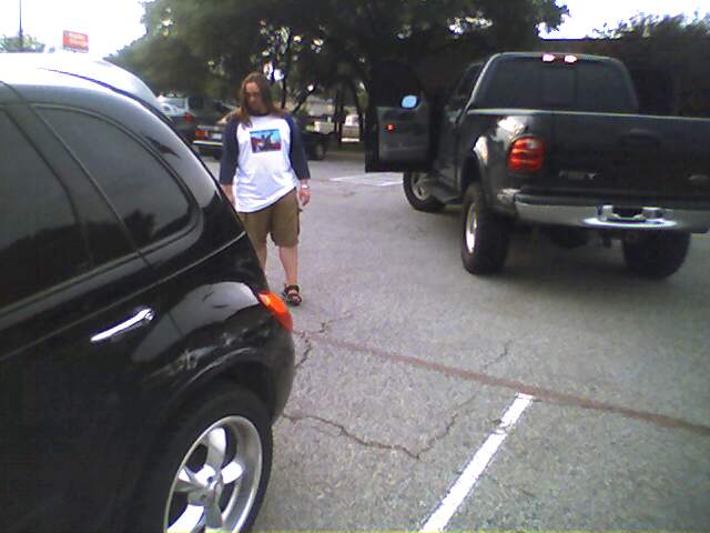 damage to Joe Wampole's PT Cruiser from Charlie Wiederhold's pickup truck in