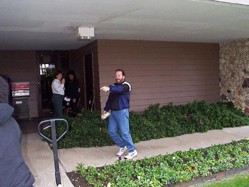 - While trying to impress the ladies (in the background) by doing an impersonation of the original Duke Nukem character walking, Steve