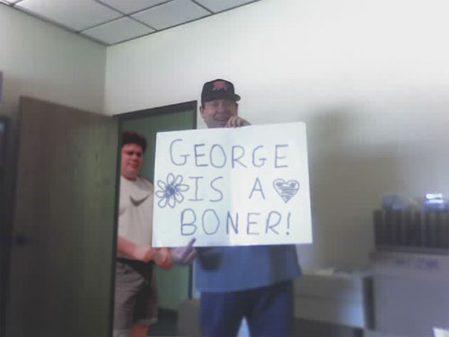 swearing in caps, preferably in size 42,000 text. George stops the
