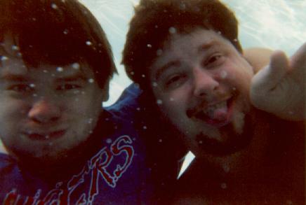 Joe Selinske underwater in the pool at Tom Hall's house.
