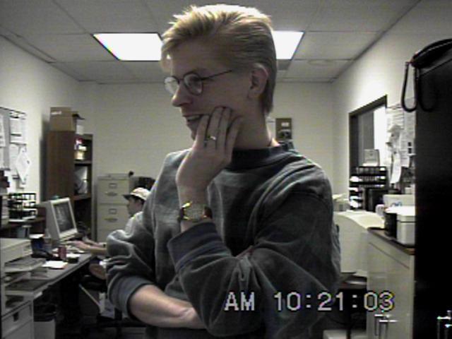 at something on Kevin Green's Monitor. (We don't know what it was - truly!)