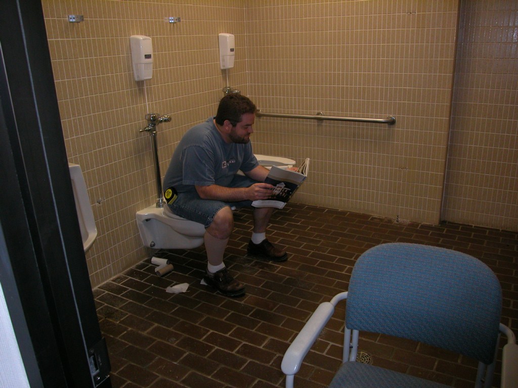 trips, Kevin sometimes likes to go to the bathroom and pretend he's