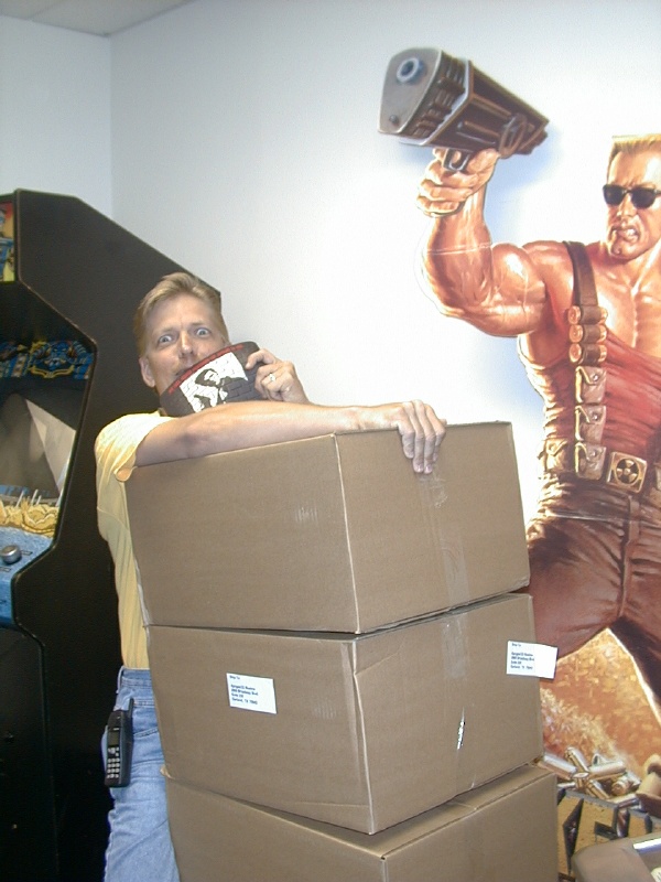 clowning around with some Max Payne mouse pads the day we shipped Max