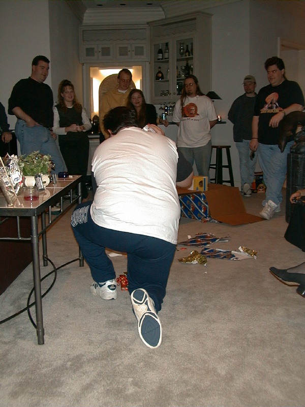 Christmas party gift exchanges. 3DR folks in the background