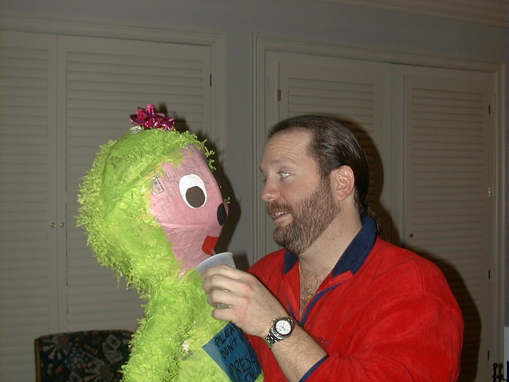 In reality, this is Steve Blackburn hamming it up with a Piņata from