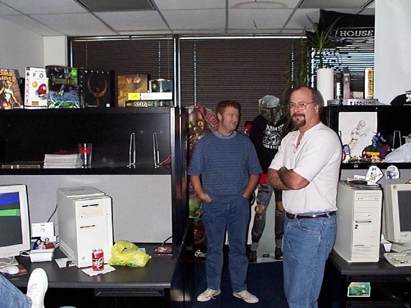 Hornback (white shirt), and John Anderson (foot on desk) in the Prey Office.