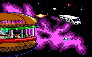 Other levels have such low gravity that the recoil from Mylo's laser pistol can knock him