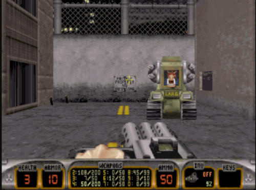 4 of Duke Nukem 3D, the "Pig Cop Tank". This is similar