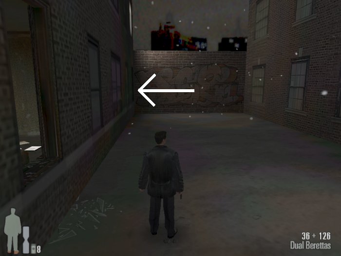 After jumping out the window take a hard left and the window on your left at the far end can be blown out. Jump in there to get some shotguns and see some Soldier of Fortune II posters.