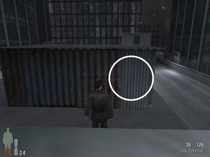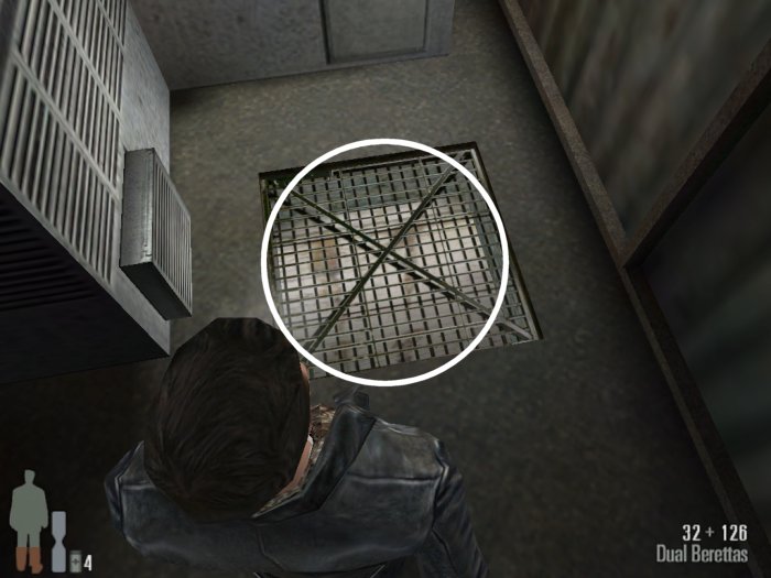 Before going going down the first level jump up on the barrels to the AC unit to the roof and then blow open the metal door. Then get on the crate to enter the room below.