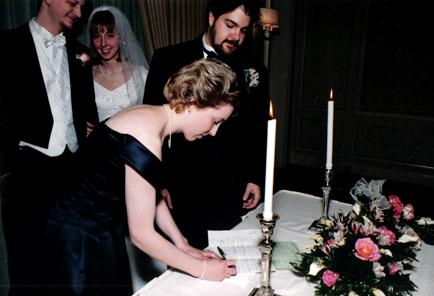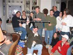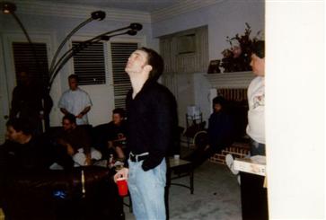 Checking out the ceiling at George Broussard's house during our 1997 Christmas party