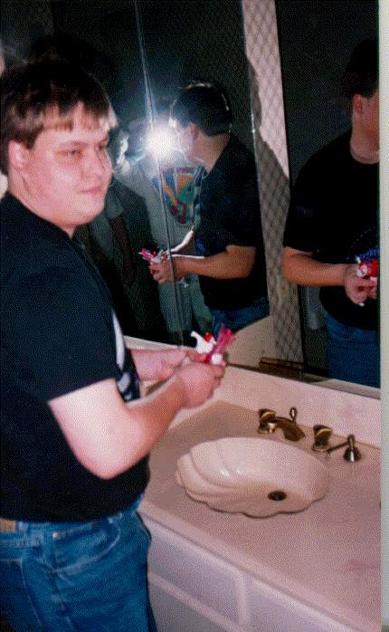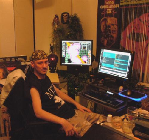 Second up is William Scarboro.  William is far more known to the public than Dennis was, as William was one of the major folks on our Rise of the Triad project, as well as being the original lead programmer and engine designer on Prey.  William died on Aug 9, 2002 of an asthma attack.  It was quite sad actually, as we're told he died alone (likely in pain due to the way he died), and wasn't found for a few days after he had passed.  But his life was one of fun and passion, and that's the way he's remembered.  In fact, most people who knew him will remember him as this photo portrays him, as it pretty much summed him up..
