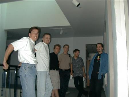 A very interesting story was the time we had to evacuate from George's house and run for our lives when a certain disgruntled developer who forgot to take his lithium came calling unexpectedly late one night, weapon in hand... I won't go in to details, but that certainly DID get one's blood pumping, and stands as a clear memory to this day. The police arrived to save the day, so we all survived the ordeal in the end.